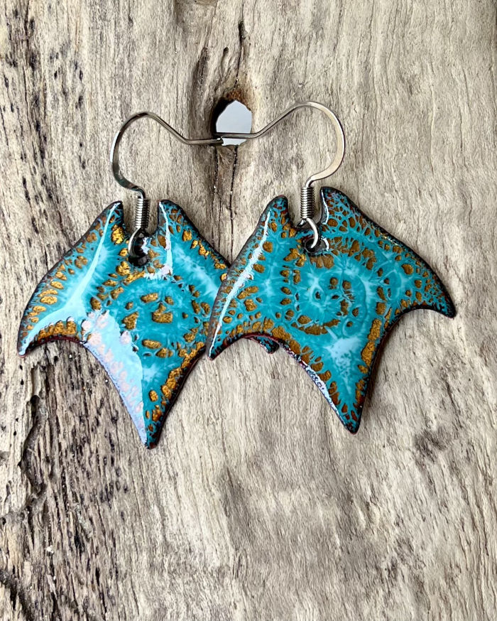 Boucles d’oreilles gouttes en émail sur cuivre, fait main en France – émaux sur cuivre